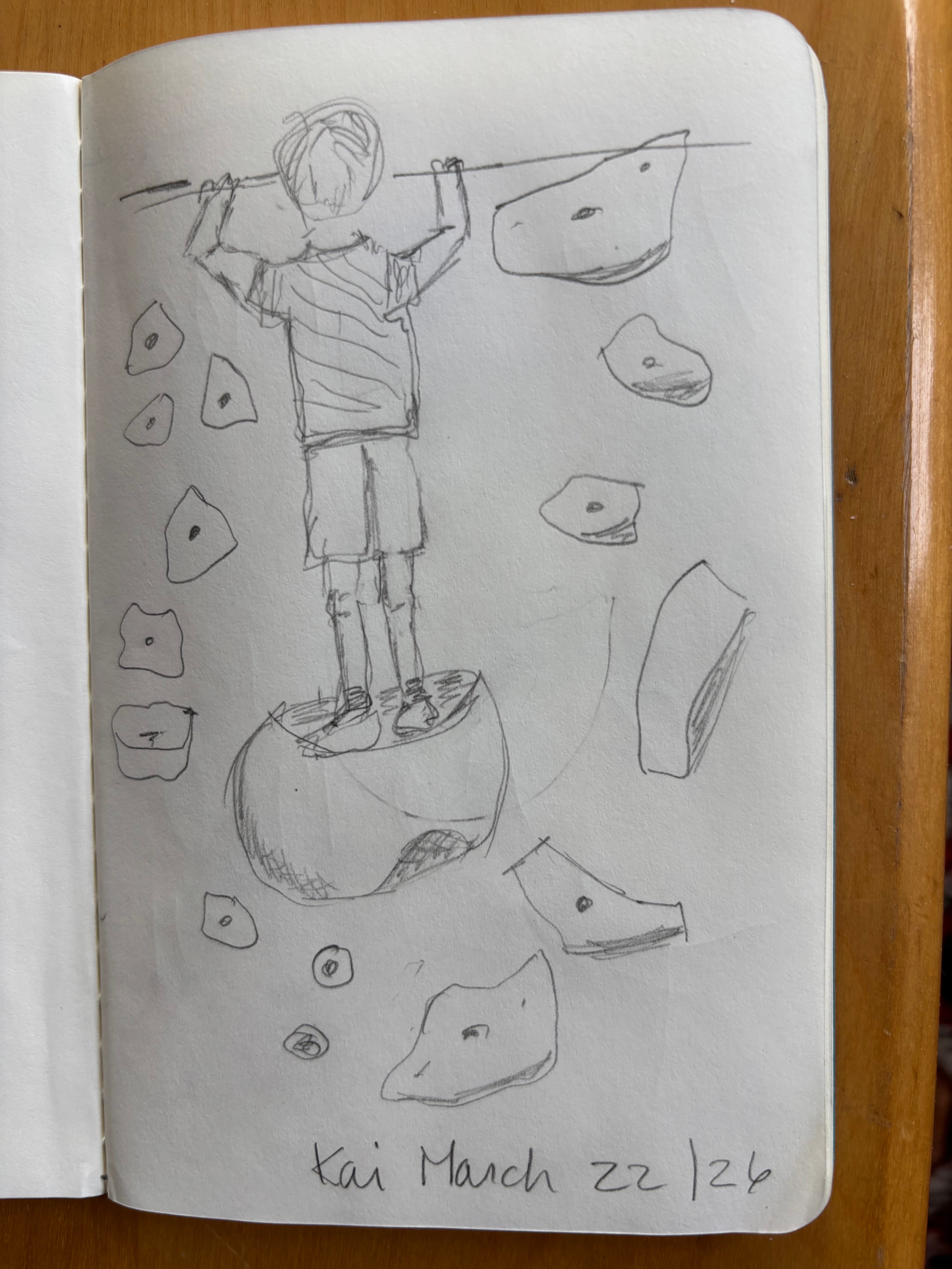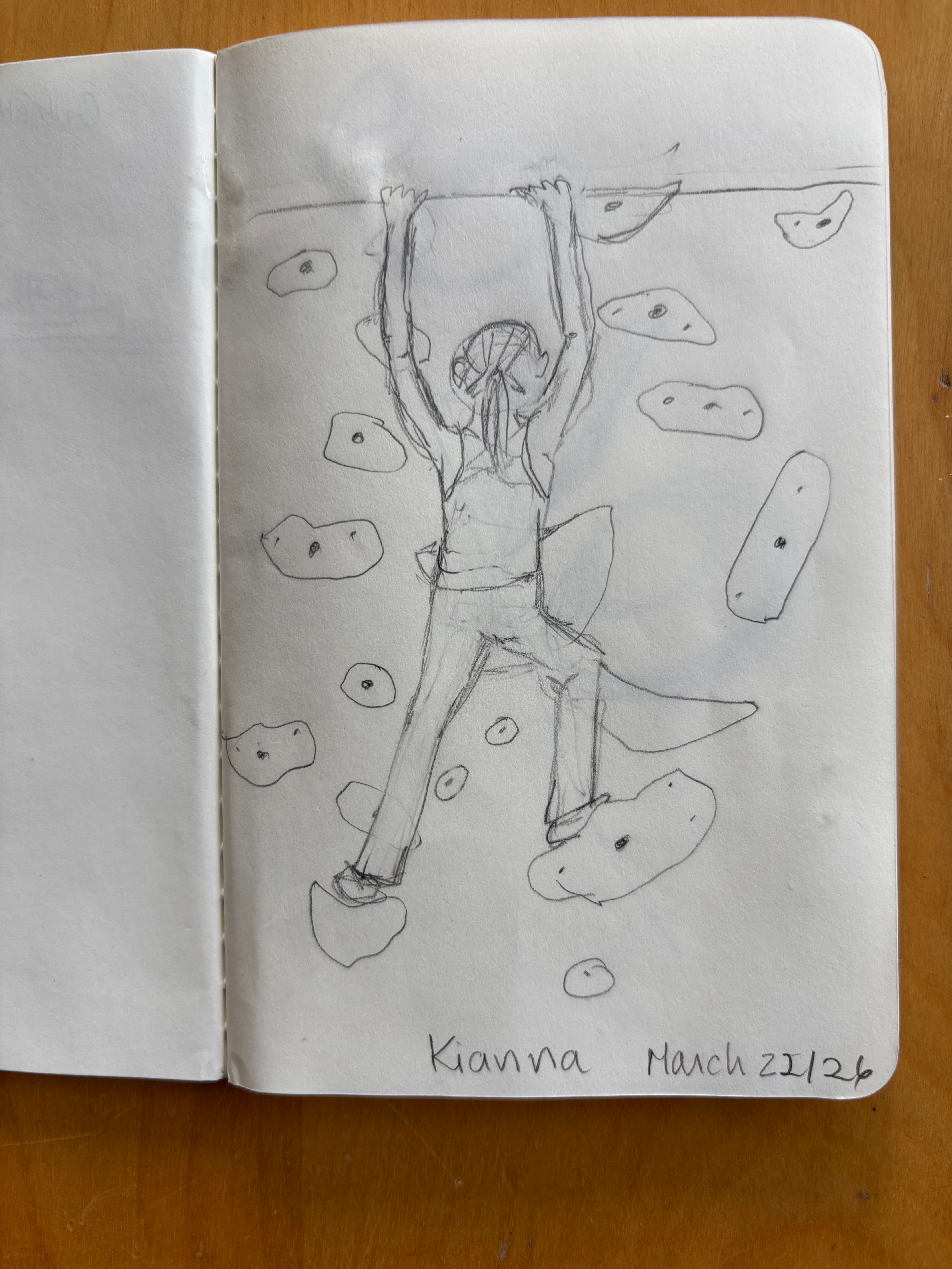 After spending the morning in tax-prep land (not a place I like to be) I went to the Boulderhouse in Langford with the family and watched all three of my grandkids climb the kids’ walls. Managed to capture the two youngest; I had to draw quickly because they didn’t stay still for long. No tutorial—just a mechanical pencil and a tiny notebook. Felt good.