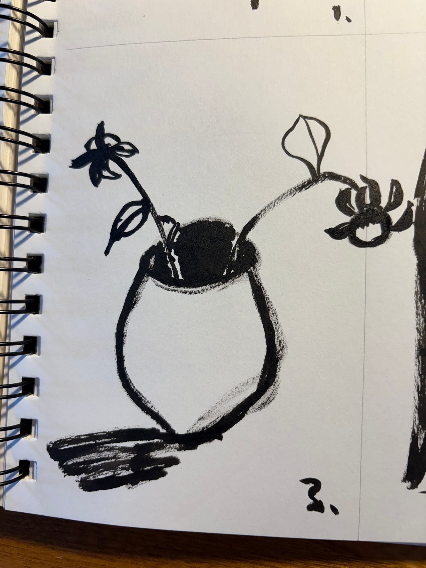 Today’s drawing (which I did a few days ago) is of the last two dahlia buds of the season. I hope that tomorrow I’ll be able to sit and draw again. And get my groceries. And do my laundry. And maybe work on our book.