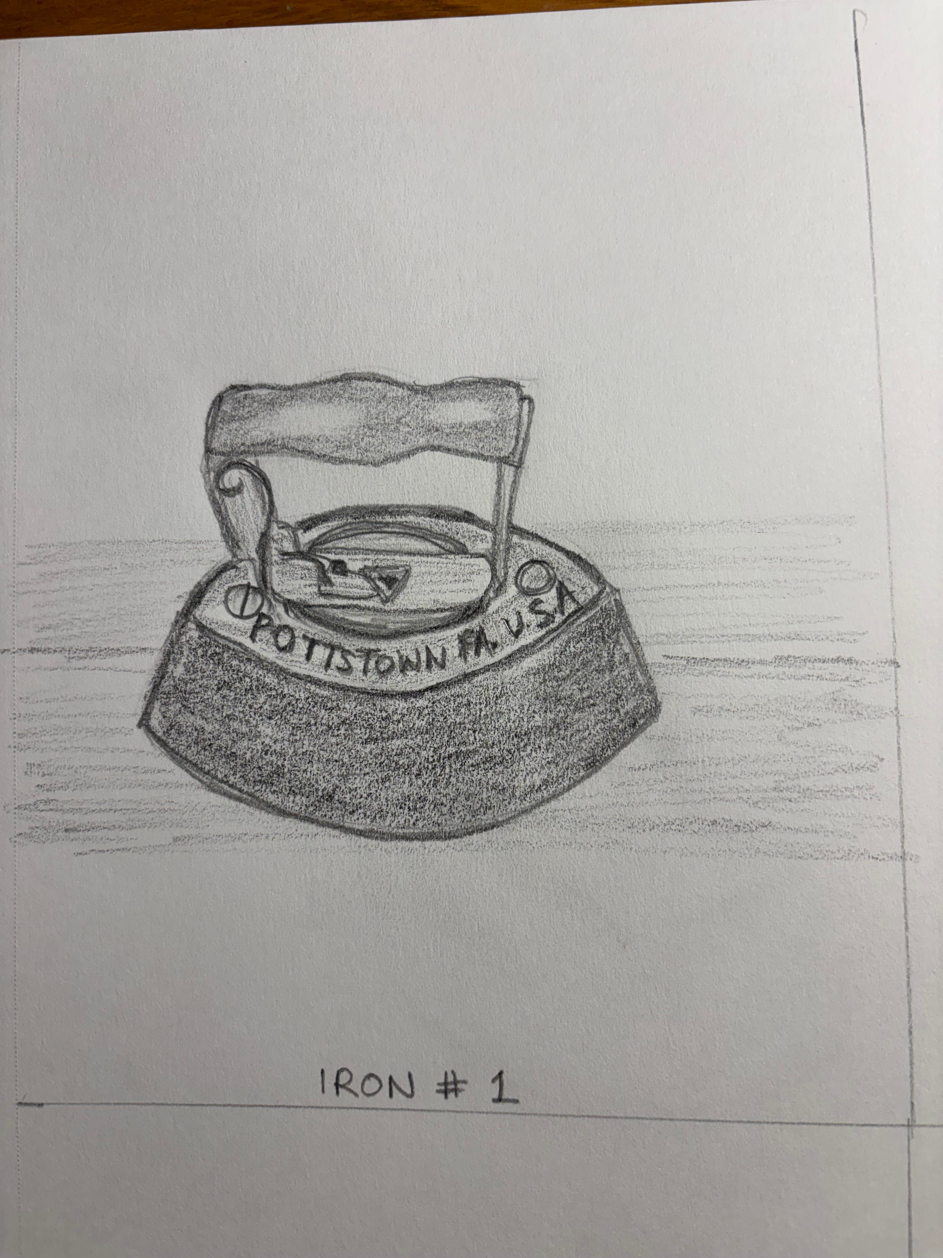 Last week I went into a consignment store and was drawn to four very old irons. I resisted buying one that day, but have since been back twice to “visit” them, each time debating whether to buy one to use as a doorstop for my deck door. Two of them (the ones I like best) have wooden handles, which would not do well in Victoria’s damp climate. But now that I think about it, I don’t leave the door open in cold, wet weather, so I could just bring the iron inside for the winter. I may have to go back and buy one! They are quite compelling objects—and really heavy!! The first electric iron was invented in 1882, but sad irons (sad means solid in Old English), were still in use in the early 20thC. I mean, I don’t love ironing, but at least I don’t have to fill my iron with hot coals to heat them up!