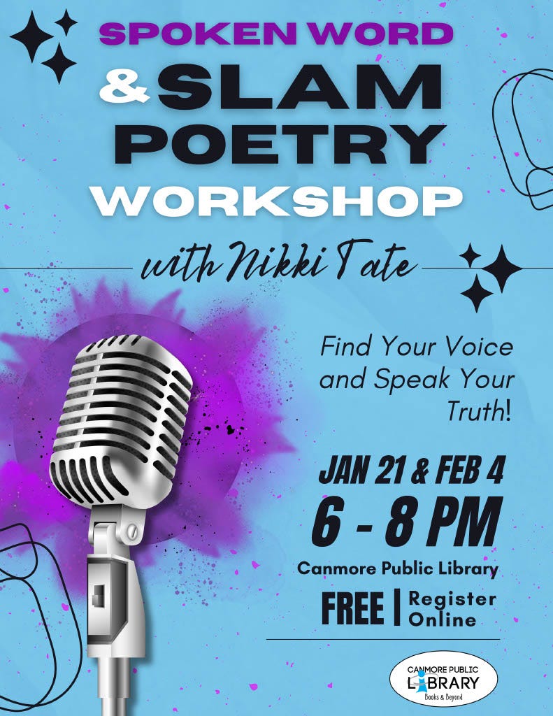 The one we did last year was a lot of fun and ArtsPlace in Canmore is hosting another slam competition in February, so the timing of this workshop is perfect for anyone who wants to have a go at developing some spoken word poetry. Oh, actually - I repurposed my zany selfie from a few weeks back for a Facebook post to promote the slam…