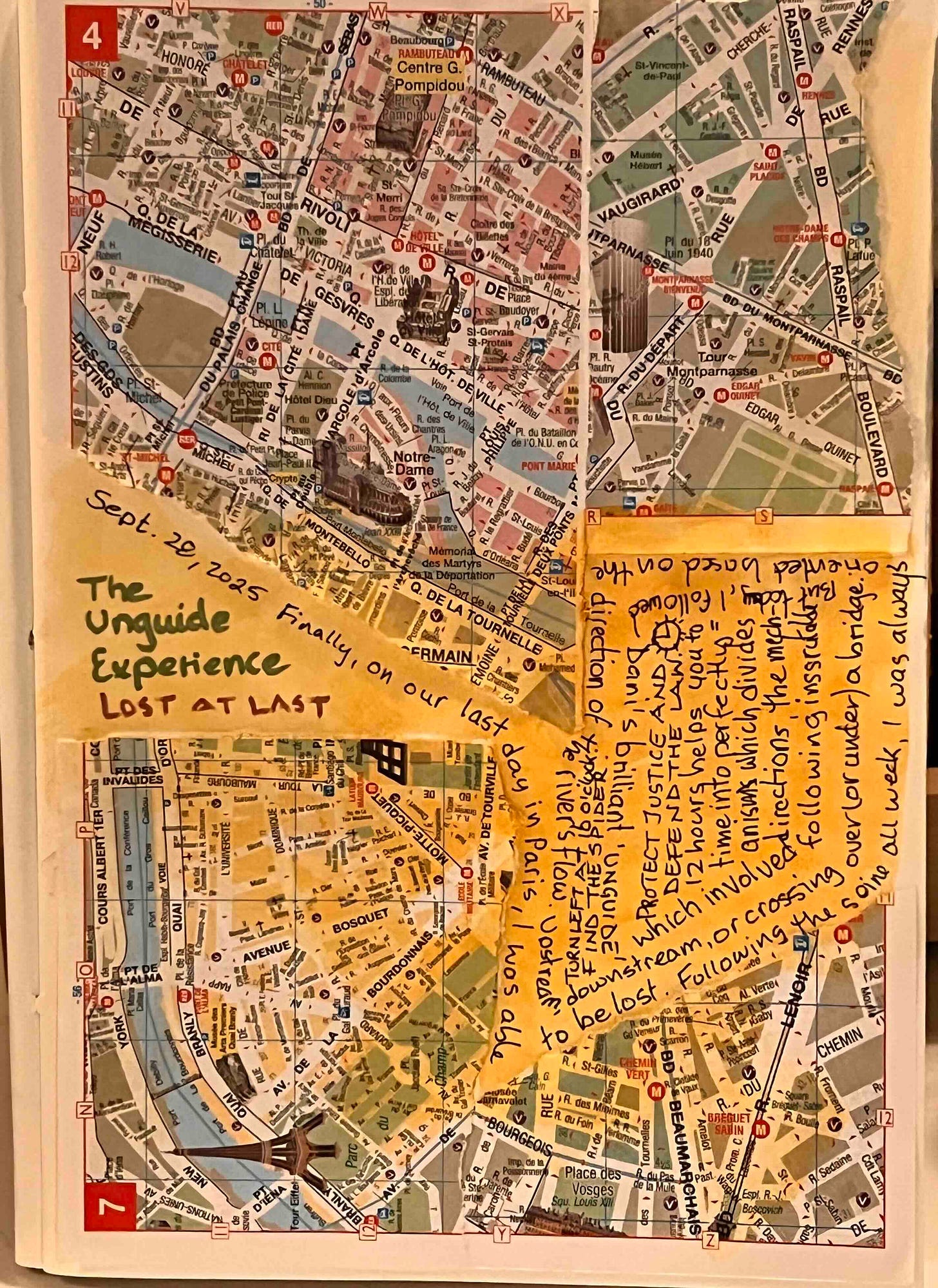 Dani, meanwhile, has been using several different documenting techniques of the early psychogeographers in Paris in her explorations of the city. She created something called an un-guide which started at Point Zero in front of Notre Dame and then led me a couple of days later (via a list of directions I had printed out) along a twisty, windy, route through the city. I had to decipher and try to follow instructions like,