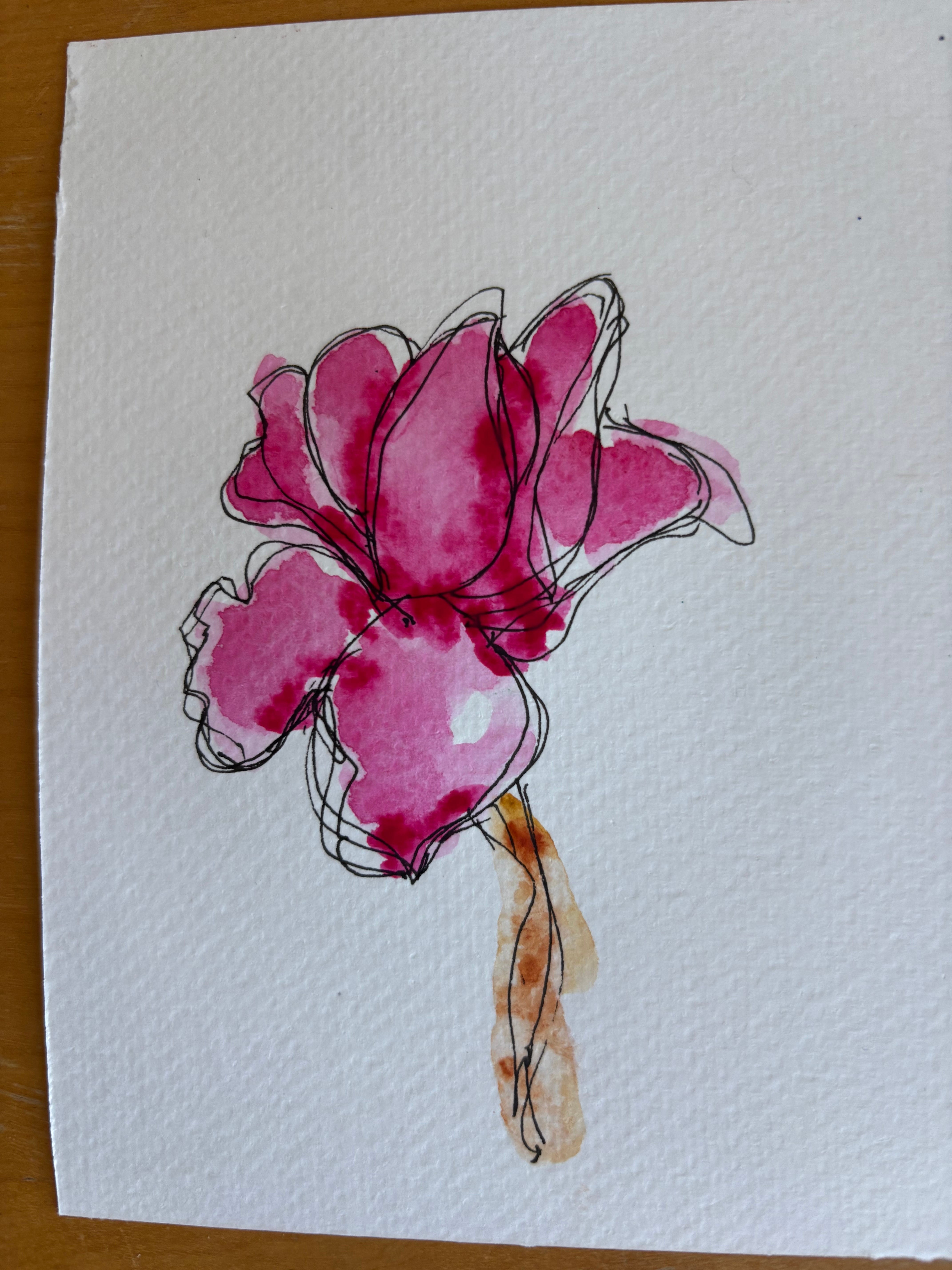 I also had enough energy to do a weight routine and spend a bit more time arting. I did one magnolia with pen and ink plus watercolour—using Speedball india ink, which is waterproof. I messed up the background, so I just cut most of it away! Then I tried again with a Sakura pen and watercolour. My favourite of all this year’s magnolias is definitely the charcoal rendition.