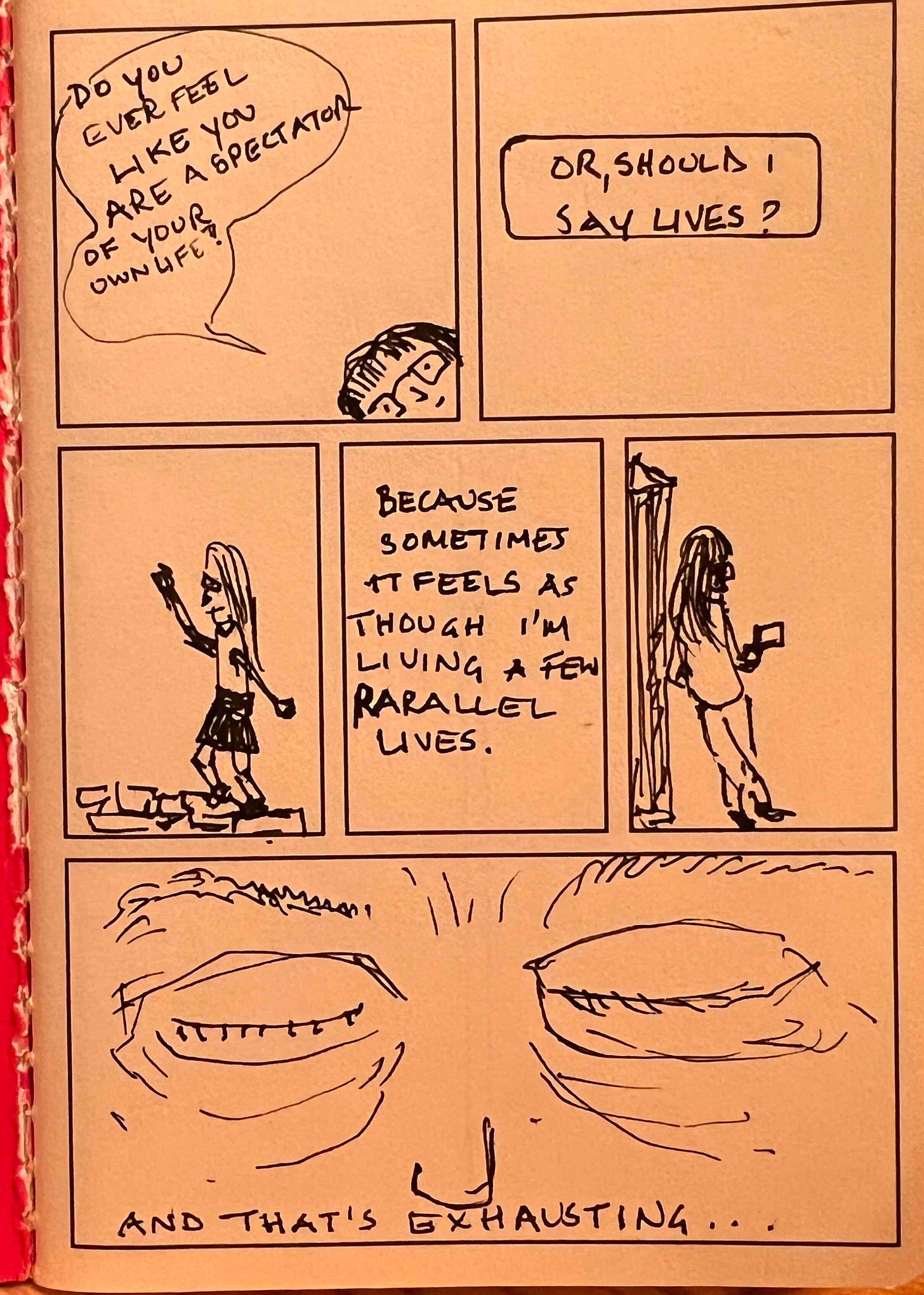 If anyone lives parallel lives, it would be you, my friend. I get dizzy just thinking about all the lives you live. I think to some extent, most people do have multiple versions of themselves, if not exactly parallel lives. For instance, I was a version of myself on Friday that rarely makes an appearance: an extrovert in a social gathering. In this case, it was at the celebration of life, where I saw many people I hadn’t seen in years. Some I was happy to see—my old psychiatrist, for instance, with whom I did not need to pretend to be an extrovert! Some…not so much.