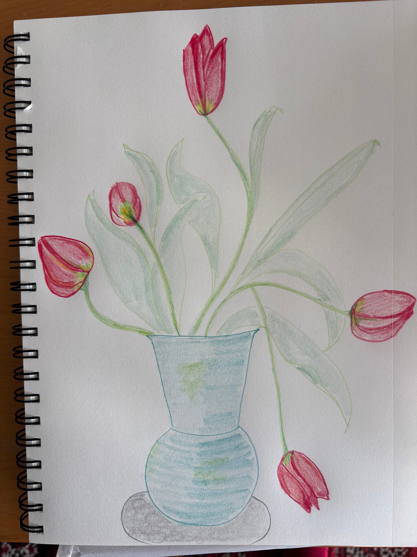 Got back to the tulips today, this time with colour pencils. It’s a bit ghostly, but in a good way, I think.
